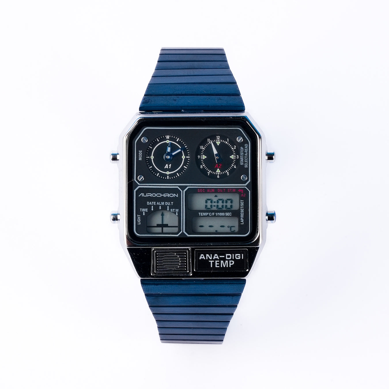 Aurochron Ana-Digi Temp Watch – Dual Display Analog Digital – Temperature Sensor – Blue Silicone Strap