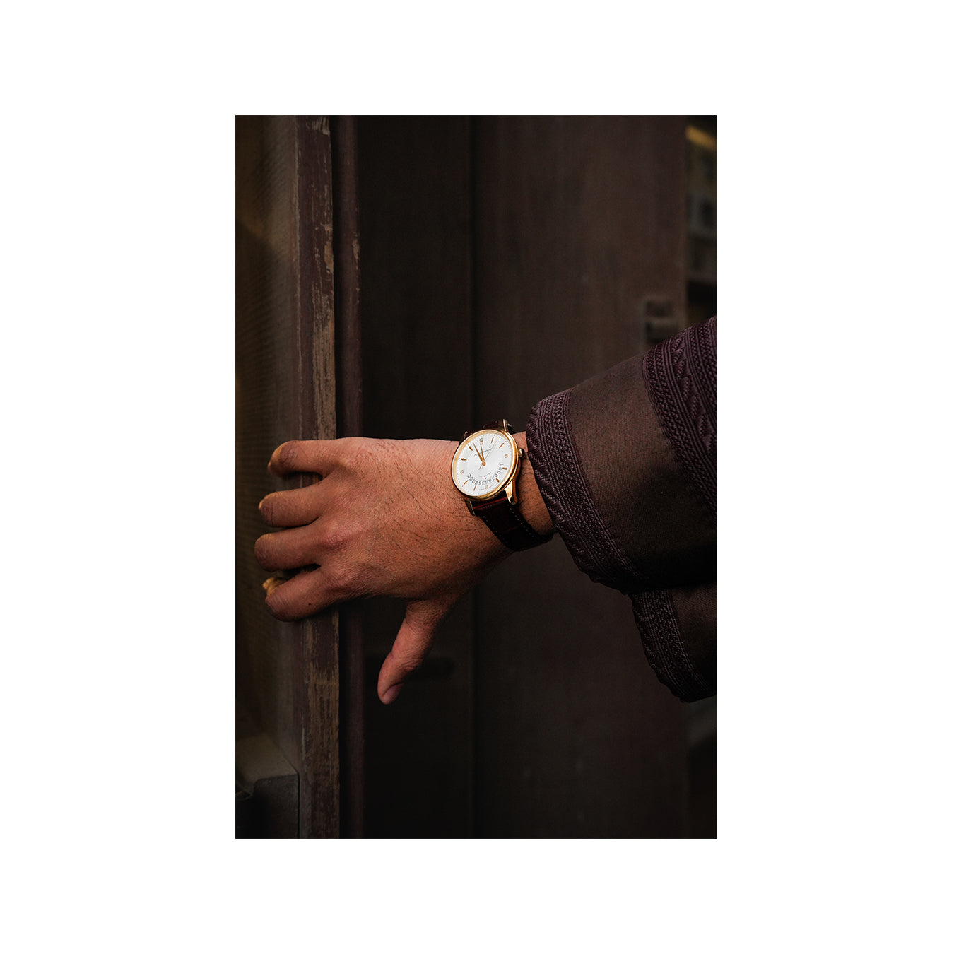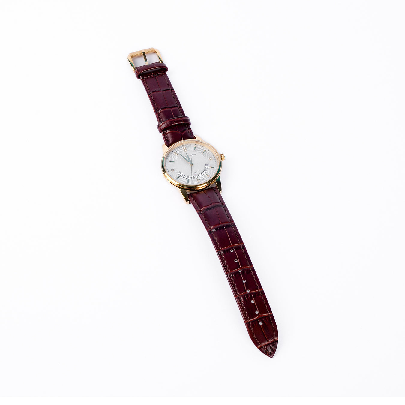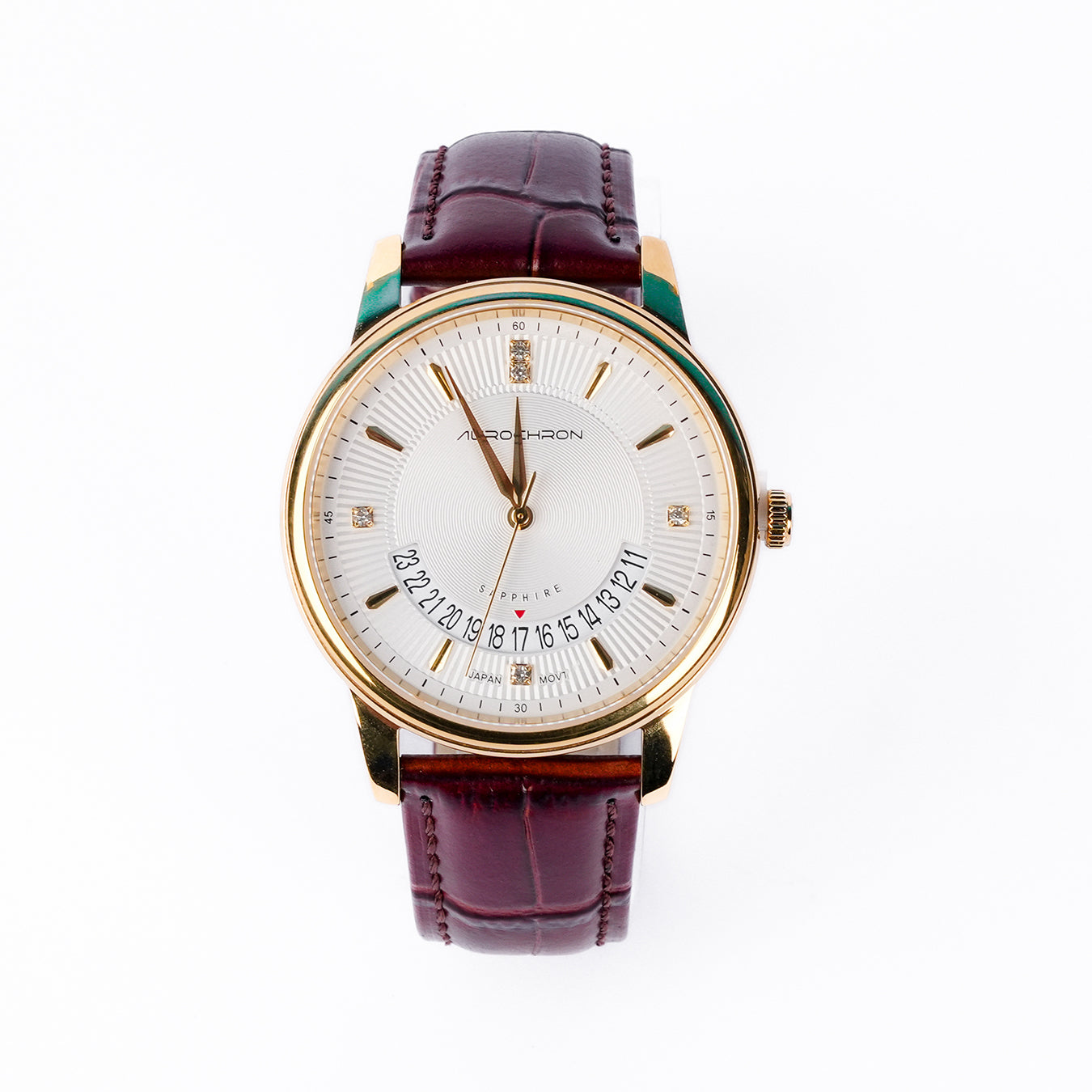 Aurochron Elegant Gents Watch – White Dial – Gold Case – Brown Leather Strap – Date Indicator – Sapphire Quartz