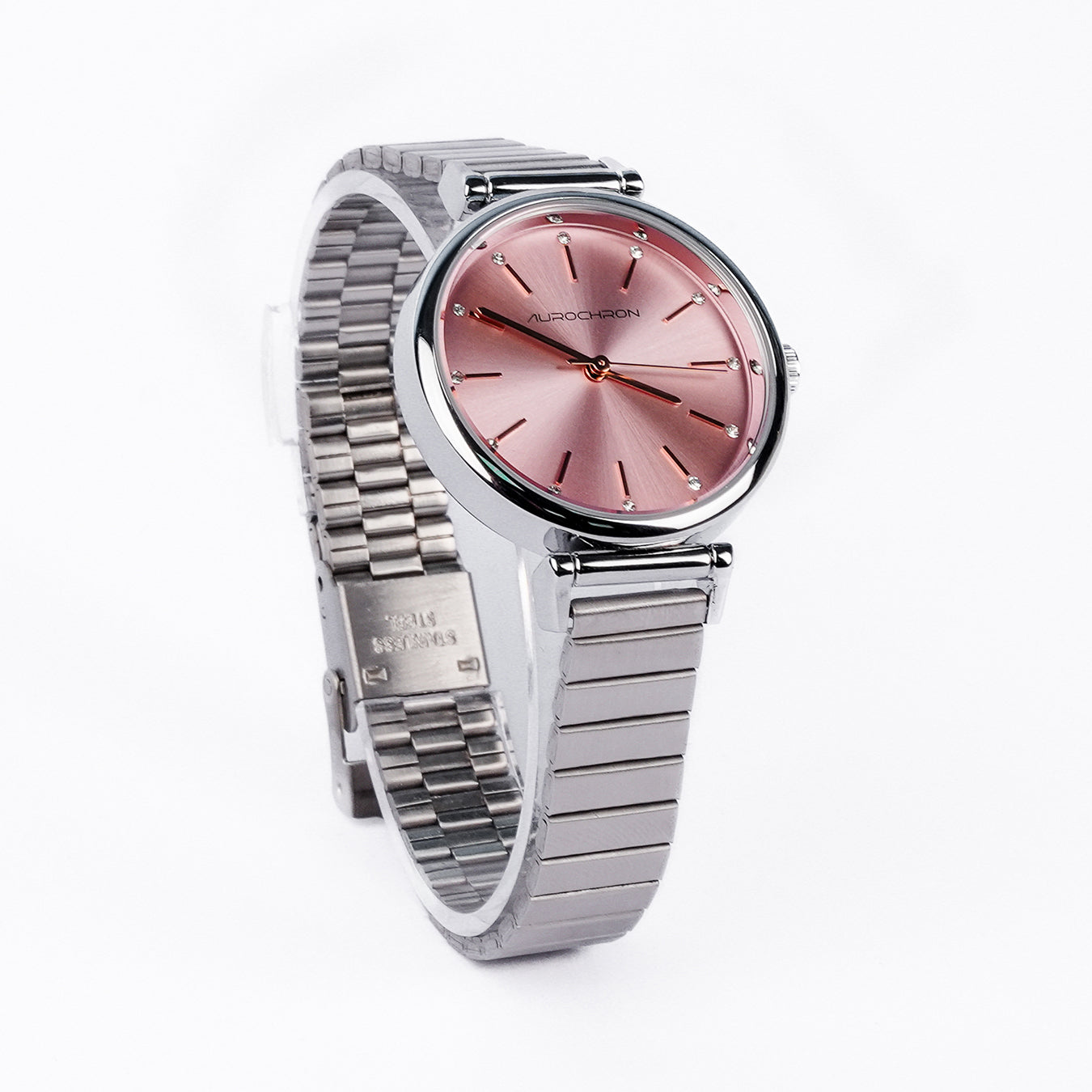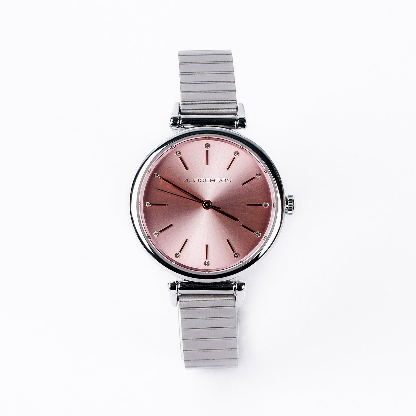 Aurochron Elegant Ladies Watch – Sunray Dial – Silver Stainless Steel Strap – Quartz