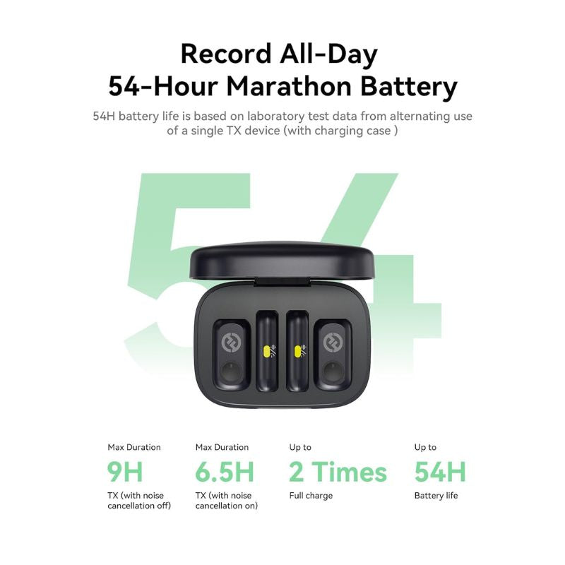 | Battery Capacity | Transmitter (TX): 65 mAh | Charging Case: 460 mAh |