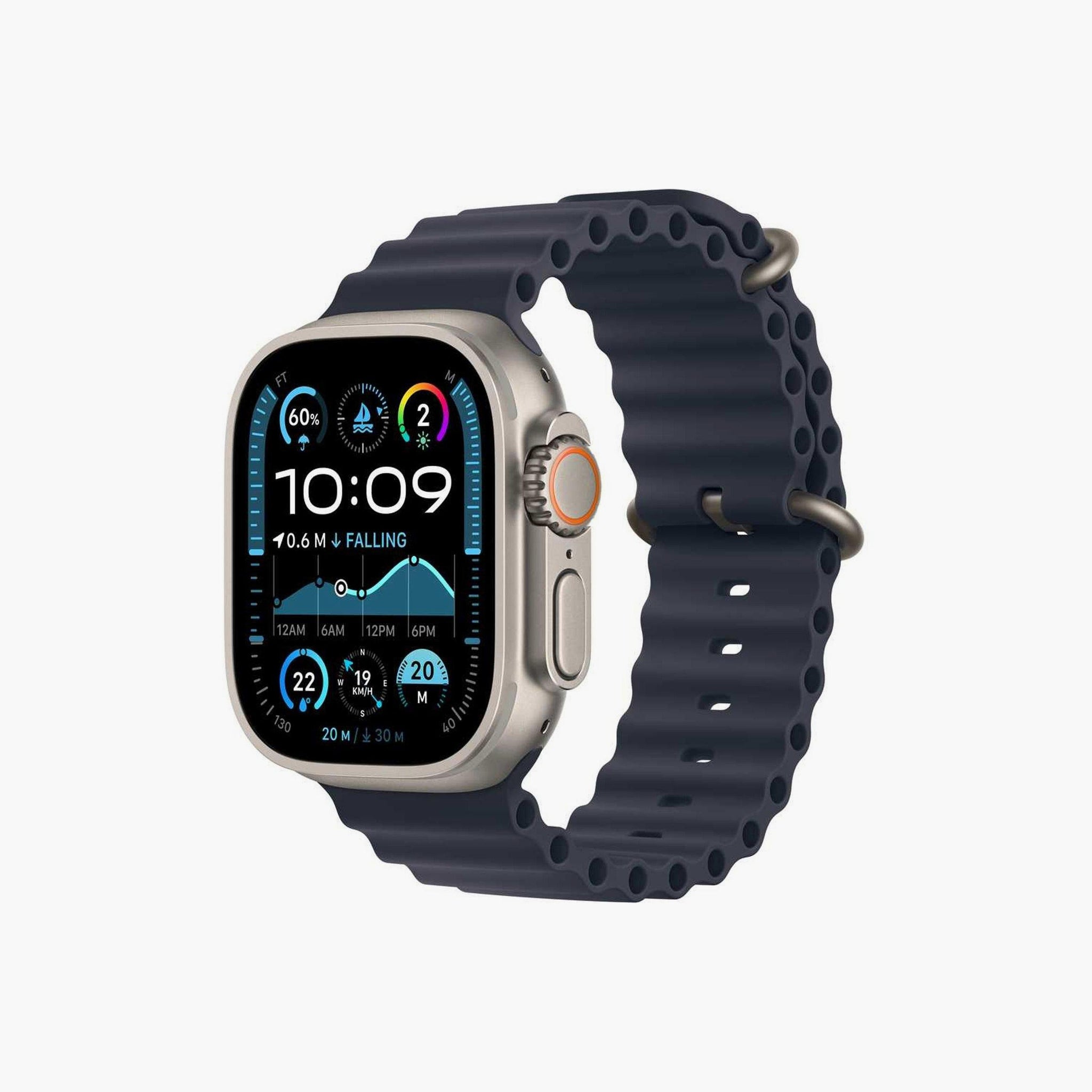 APPLE Watch Ultra 2 Cellular - 49 mm Natural Titanium Case with Blue Trail Loop, M/L, Tracks sports / steps / distance / calories / sleep, Monitors heart rate with ECG / blood oxygen / temperature, Battery life: Up to 36 hours, Water resistant & swimproof, GPS, Compatible with iOS