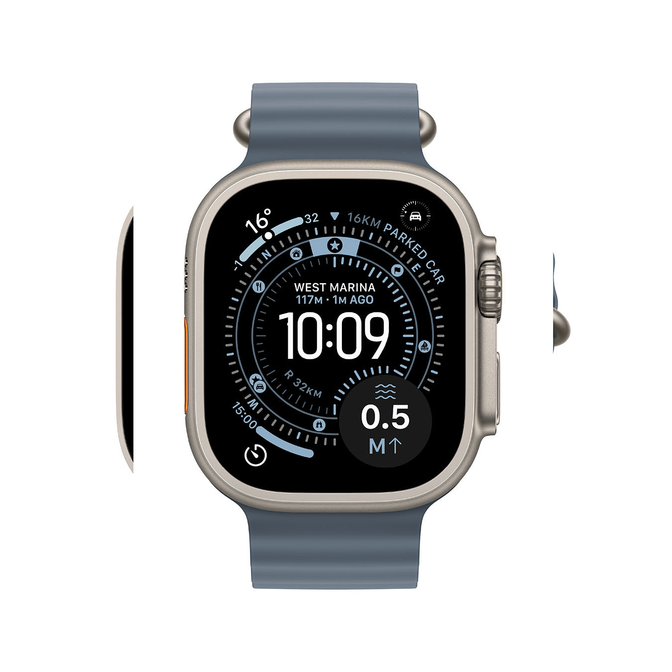 Hardware and Buttons Customisable Action button, Digital Crown, Side button, Microphones, Dual Speakers, Siren, Depth Gauge, Water Temp Sensor, Altimeter, Antennas (GPS + Cellular)