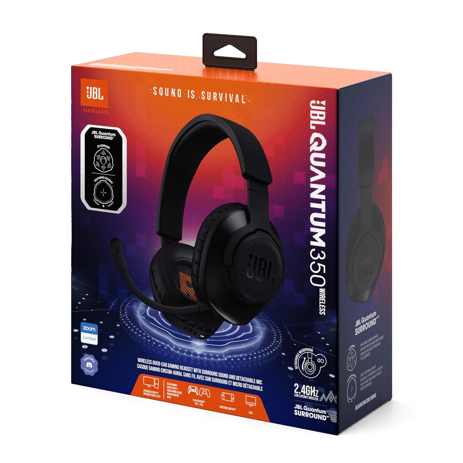 Included Components 1 x JBL Quantum 350 Wireless Headset, 1 x USB Audio Adapter, 1 x USB Type-C to Type-A Cable, 1 x Boom Mic with Windshield, 1 x QSG, 1 x Warranty Card, 1 x Safety Sheet