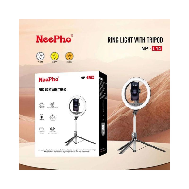 Neepho Professional Ring Light with Tripod Stand, 2m Stainless Steel Selfie Stick, 3 Light Modes, Wireless Remote Control, Bluetooth Connectivity, Model NP-L14